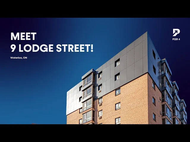 A promotional property video for 9 Lodge Street, highlighting its modern suites and prime location in Uptown Waterloo.